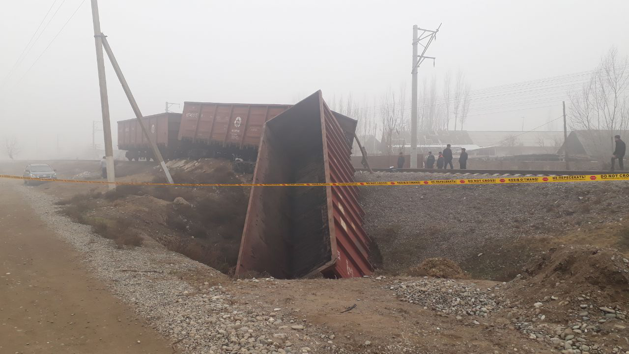 «12 декабря в 11.10 времени для ООО «ОООТА Миниралс» в 13 полуоткрытых вагонах доставили угольную продукцию из Казахстана. Вагоны встали на седьмой путь железнодорожной станции Пайтуг (Андижанская область) и после того, как продукция полностью была выгружена, по причине того, что на колеса вагонов не прикрепили железнодорожные башмаки, эти полуоткрытые вагоны покатились вниз и полуоткрытый пустой вагон №63080675 упал на левый бок в арык, а передние колеса такого же вагона №60745015 вышел с пути», - говорится в сообщении пресс-службы министерства внутренних дел (МВД).