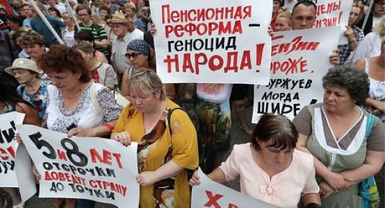 Напомним, что правительство России предлагает поднять возраст выхода на пенсию до 65 лет для мужчин и 63 лет – для женщин. Согласно опросу социологов, 9 из 10 россиян отрицательно относятся к этой инициативе. По всей стране с 30 июня проходят профсоюзные акции протеста против пенсионной реформы.